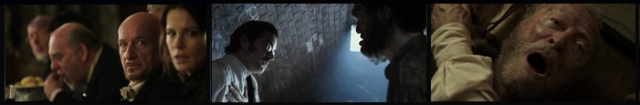 1899. Giunto nello sperduto istituto psichiatrico immerso nella nebbia di un posto desolato, si trova di fronte un rivoluzionario metodo applicato dall'attuale direttore: i matti sono tenuti in condizioni di normalità e non legati com'era in uso ovunque. Ma all'interno della struttura vi è un segreto custodito nelle segrete stanze... Il regista di SESSION 9 torna nel "luogo del crimine", ovvero i manicomi... per un film in costume. Brad Anderson ambienta la viceda liberamente tratta da Edgar Allan Poe ("Il Sistema del Dottor Catrame e del dott. Piuma") in un gigantesco luogo di "cura" per malati mentali nel 1899, precisamente nel mese di dicembre, e a pochi giorni dall'alba del nuovo secolo. Per questo film dispone di un cast della madonna, con in testa Ben Kingsley e Michael Caine, due facce della stessa medaglia, di un capovolgimento prospettico che giungerà appena dopo la prima mezz'ora di metraggio, e ancora con un cattivissimo David Thewlis, e i due più giovani Kate Beckinsale e Jim Sturgess, le due figure centrale mcguffin d'innesco di tutta la vicenda. Il prologo infatti ci riporta ad una lezione univeriaria dove, a beneficio degli studenti, ci viene mostrata una paziente "affetta da isteria" interpretata dalla bella attrice inglese. All'inizio le atmosfere mortifere ricordano (e non poco) Tim Burton, poi quando ci si sposta all'interno della struttura il regista gioca più con luoghi comune tipici dei film ambientati in strutture psichiatriche, cliché on-peut-dire, andando poi a 2/3 a perdere un pochino l'ago della bussola. Lo spettatore è il primo ad accorgersi in quel "qualcosa" che pare non andare nel verso giuto, e dopo quel primo twist della prima parte ci andrà verso un secondo twist proprio nel finale ultimo, quando verrà messo in discussione un dato che credevamo ormai di fatto. "Stonehearst Asylum" si configura come uno strambo melò, con poche scene madri (la scena della carbonaia) e Nel cast anche Brendan Gleeson, visto, dopo vent'anni, agli Oscar. "Perché produrre un uomo infelice da un cavallo felice?". [FB] |