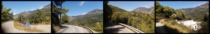 Una scoperta è stata notare, dall'alto del balcone panoramico presso il ristorante alto di Saint Agnes ("Le Righi") affacciandosi verso la Vallée di Castillon di Menton, una serie di quelli che appaiono come tornanti concentrici risalenti una collina sottostante, delimitati da zone verdi alternate a zone visibilmente "cementificate". Successivamente, consultando le google maps, ho verificato trattarsi di una strada per quanto mi riguarda totalmente inedita. Occorre raggiungere per prima cosa la strada che risale da Menton presso la frazione "Monti". Questa, che poi è chiamata "Route de Sospel", si può imboccare oltre la rotonda che introduce all'autostrada, oppure percorrere l'area commerciale per intero per poi inforcare la salita che va ad innestarsi appunto nella suddetta strada. Pochi metri dopo, in corrispondenza del bar posto sulla sinistra, svoltiamo per imboccare la strada che l'indicazione riconduce alla salita verso il PARC DU SOUVENIR che, in sintesi, si riconduce al terzo cimitero cittadino, nonché il più grande di dimensioni. Saranno poco più di due chilometri da qui che saliranno in maniera moderata, per poi impennarsi più sensibilmente in un certo punto. Questa strada conterà anche tornanti (foto 1) e risalità con facilità la dorsale prima sconosciuta di questa vallata (foto 2). Poche e centellinate le abitazioni che qui si possono scorgere nella vegetazione (foto 3) e dopo qualche tornante la strada raggiungerà il suo apice (foto 4) incontrando quello che avrà l'aspetto del tipico viale alberato (foto a lato) che conduce ai camposanti. Un grande cancello rappresenterà la fine di questa salita, ma l'asfalto e la parte pedalabile non si concluderà qui. Come già per l'altro cimitero di Menton, quello di "Trabuquet" (non quello del "Castello", ma quello più in alto in zona Garavan) si potrà infatti percorrere l'intero perimentro sulla propria bicicletta. L'inzio si prospetta pianeggiante... >CONTINUA |