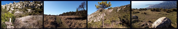 Dopo un anno passato a pedalare sulla salita di Castellar, il 2025 non poteva concludersi senza una randonnéé, per dirla alla francese, ovvero una "camminata in montagna" verso i punti panoramici posti praticamente intorno al villaggio di origine medievale. La prima di queste è rappresentata dal cosiddetto PLAN DU LION La camminata inizia nei pressi del cimitero cittadino, dove si imbocca la salita inizialmente in asfalto e in breve in cementone che riporta al Col Saint Bernard dov'è la cappella sperduta, già raggiunta anni fa su due ruote attraveso una rocambolesca e folle giornata. Giunti al primo bivio, proprio in cima all'erta svoltiamo a destra, diretti verso le villette panoramiche già raggiunte alcuni mesi fa in bicicletta. Proseguendo, passati per uno sterrato e superata l'ultima abitazione (civettuola, con gli infissi blu) troviamo il sentiero che un cartello (foto 1) riporta appunto alla nostra prima meta. Il sentiero si inerpica progressivamente in una mulattiera che procede a zig-zag (modalità che detesto nelle camminate, perché personalmente la trovo parecchio sfiancante) raggingeremo un ennesimo bivio. A sinistra si salirà verso il Col du Berceau, un punto d'arrivo ben più impegnativo, posto com'è a oltre 1000 metri sul livello del mare. Optiamo in questo caso per la digressione rappresentata dal "Plan du Lion": un pianoro panoramico che si affaccia direttamente sulla costa e su Mentone. Dal bivio, sulla destra si procede perciò lungo un sentiero piano che si inerpica solo per gli ultimi metri (foto 2) e in pochi minuti ci proietta in questo posto panormico, scostato rispetto alla parte rocciosa della montagna (foto 3) e che guarda sul porto di Mentone, analogamente alle Granges Saint Paul, posizionate ben più in basso. Il luogo si presta anche a campeggiare, e vi si trovano segni di falò. Questo posto si presta bene per una tappa prolongata. [FB] |